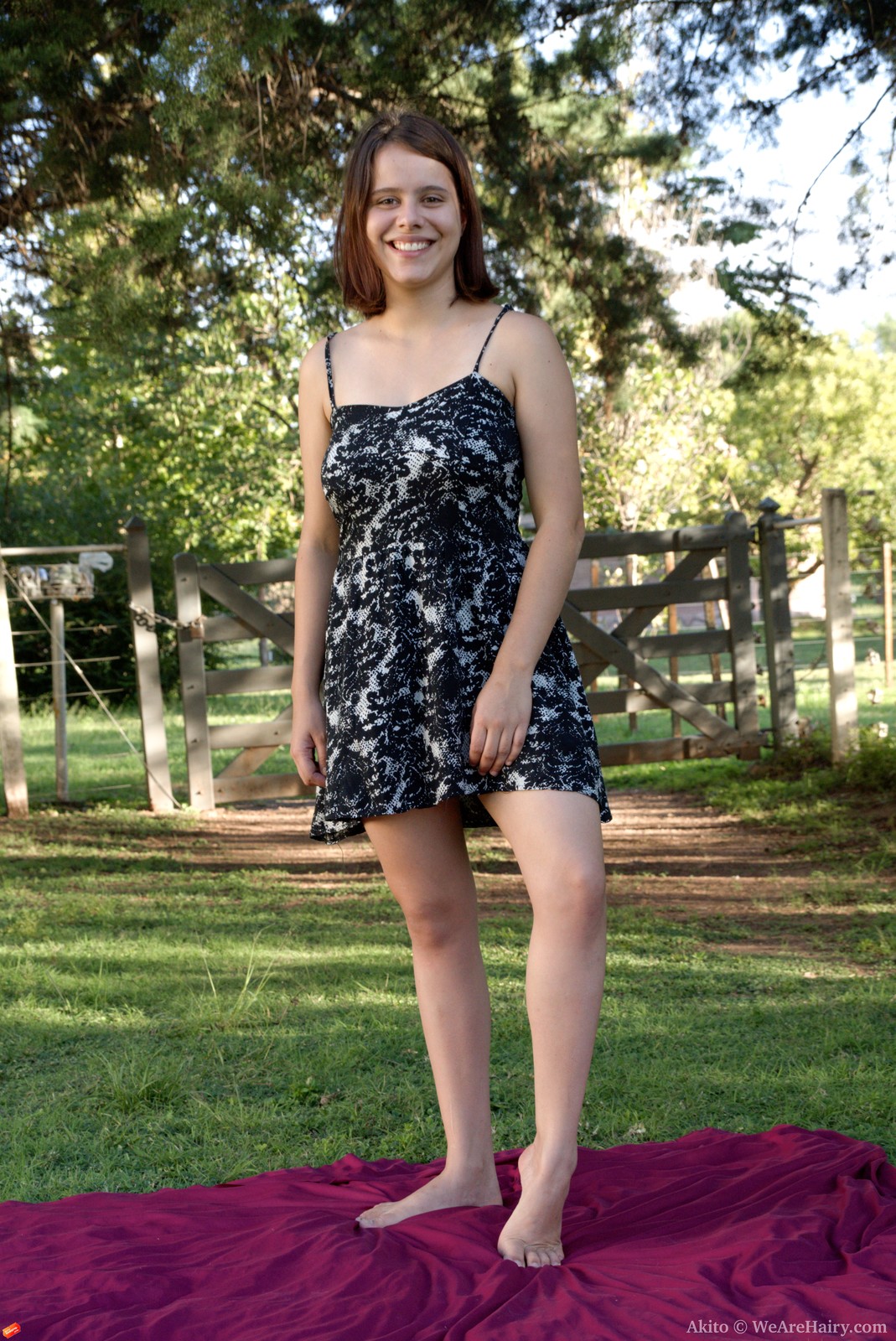 Akito in We Are Hairy set Akito takes evening dress off outdoors to be naked