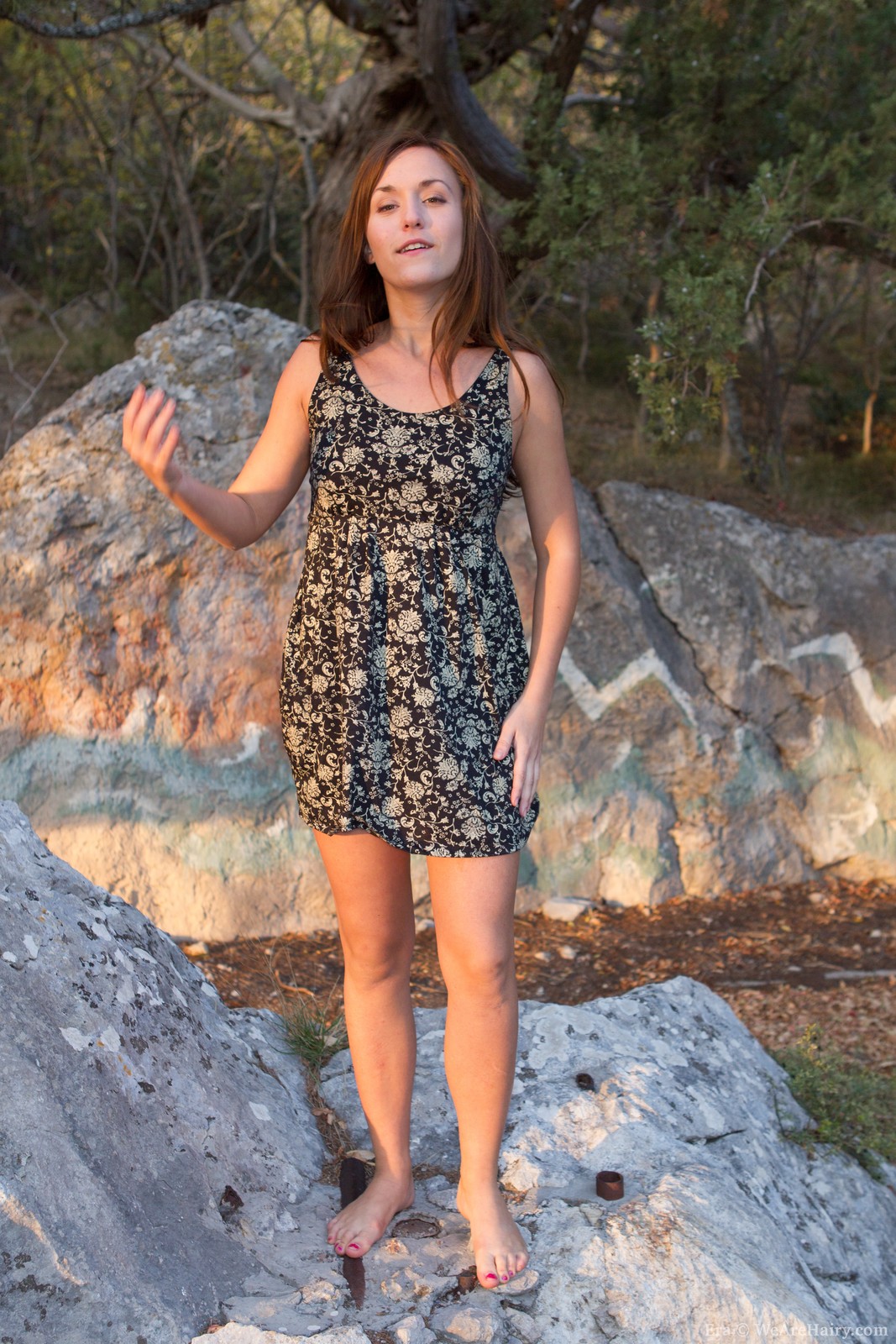 Era in We Are Hairy set Era taking off her dress showing her hairy pussy