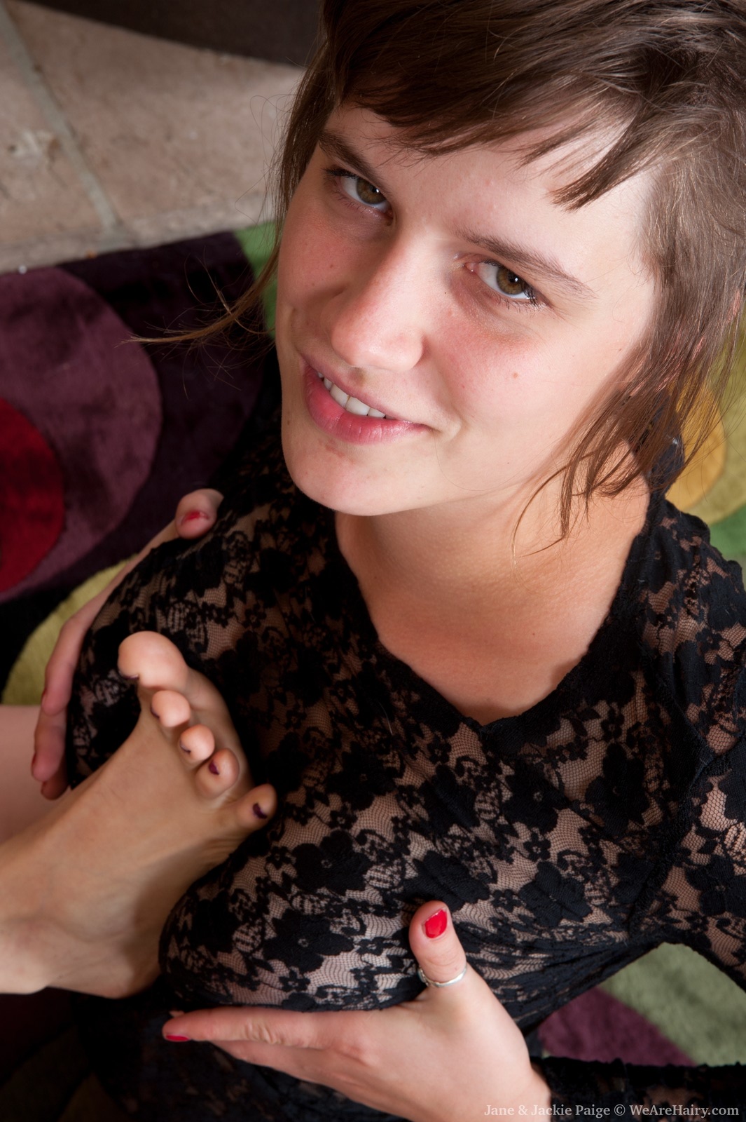 Jane and Jackie Paige in We Are Hairy set Hairy girls Jane and Jackie Paige have floor fun