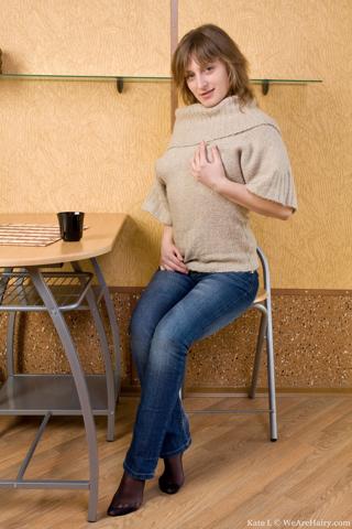 Kate L in We Are Hairy set Kate L gets naughty on the table