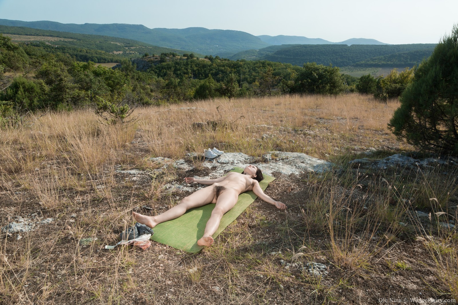 Ole Nina in We Are Hairy set Ole Nina masturbates outdoors doing naked yoga
