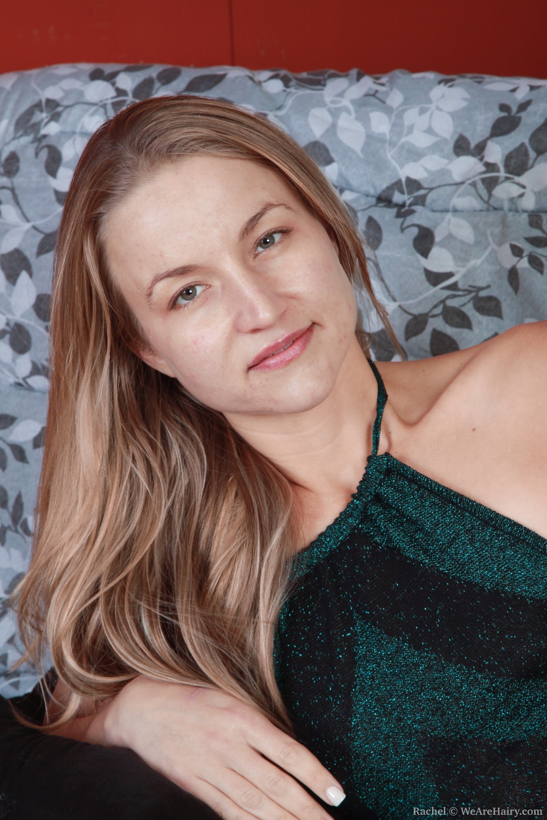 Rachel in We Are Hairy set Rachel Shows off cute hairy mound on futon