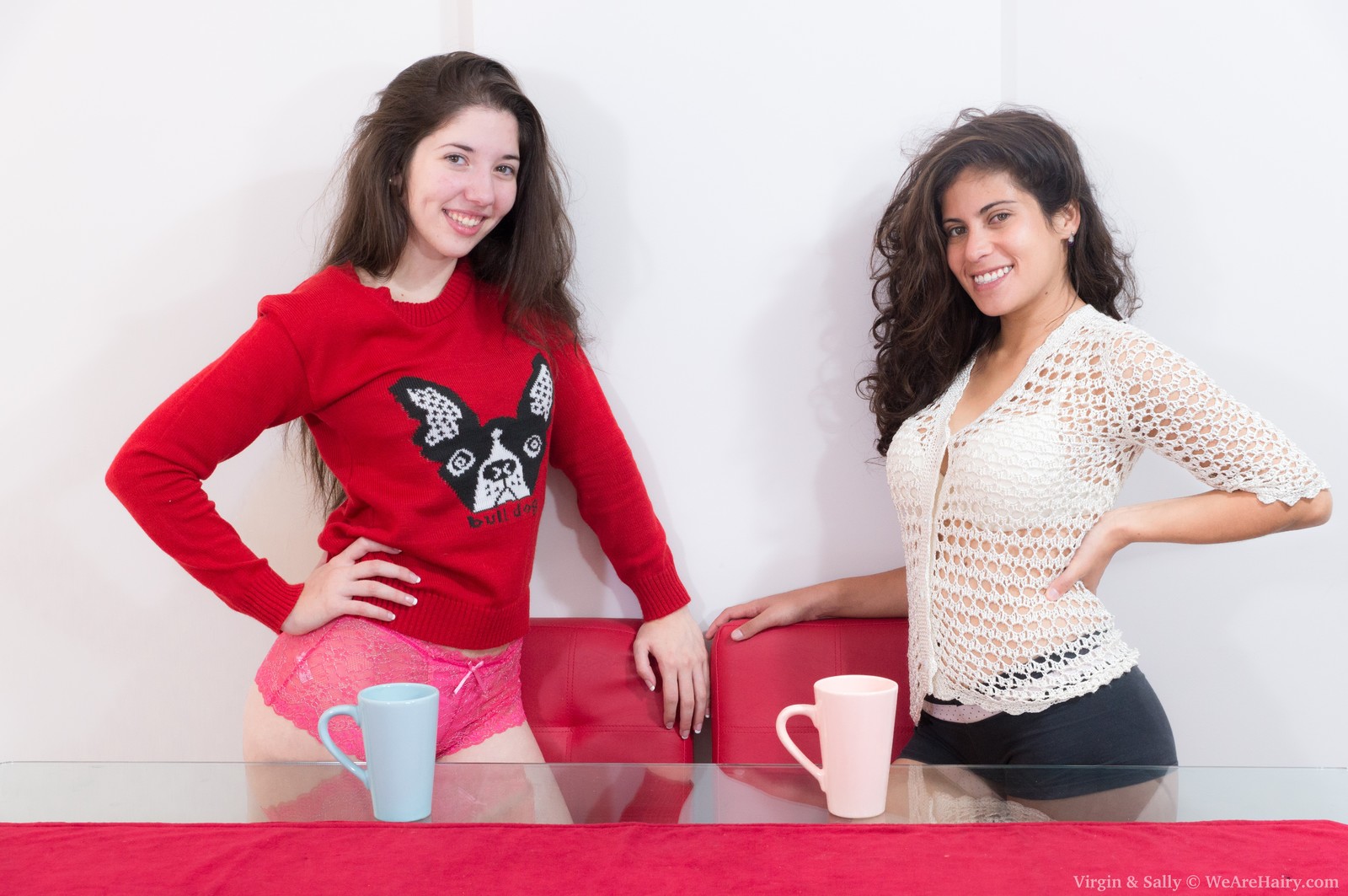 Sally and Virgin in We Are Hairy set Virgin and Sally undress and kiss each other madly