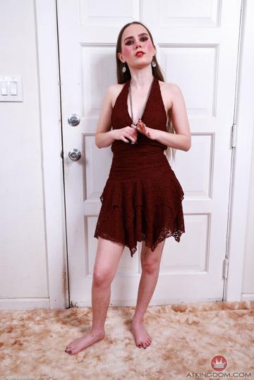 Sia Wood in ATK Petites set Red Dress Strip and Hairy Pussy Spreads